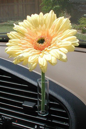 Me-Mo Vase à voiture et fleur de voiture (marguerite jaune de gerbera)comme VW Beetle mais-pour aucune voiture !