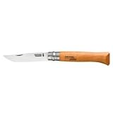 | ✚✚✚ Opinel - Couteau opinel n°12 lame carbone Lame acier à haute teneur en carbone (0,90%). Manche en hêtre Longeur de lame 12 cm. L'acier au carbone Opinel est un acier non allié, à haute teneur en carbone permettant d'obtenir après l'opération de traitement thermique l'excellente dureté qui garantit une parfaite tenue du tranchant ainsi qu'une grande résistance à l'usure et un réaffûtage facile. Cependant l'acier au carbone ayant une faible résistance à la corrosion par l'humidité, il nécessite des précautions d'utilisation : ne laissez pas votre couteau en milieu humide notamment en lave-vaisselle, essuyez la lame avec un chiffon gras après usage et graissez la souvent ainsi que son articulation.