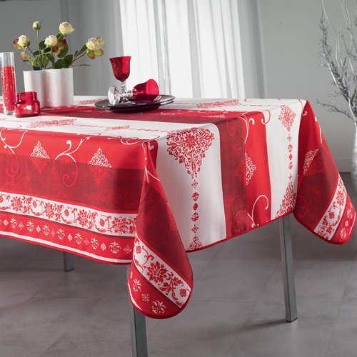 Nappe anti-tache rectangle 150x240 cm festive noel rouge
