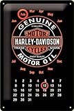 Harley Davidson Oil en métal embossé calendrier muralSigne d'acier de qualité convexe avec l'image très gaufré et profondément convexes dans la section Anneaux magnétiques permettent une utilisation comme un calendrier éternelle Pas un mince panneau souple Trous pré-percés pour la fixation Nouvelle réplique d'un vieux panneau Sous licence officielle 300mm x 200mm (12 "x 8")