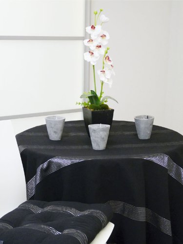 NAPPE RONDE 180 cm LYAM NOIR Jacquard Rayures Brillantes Argentées
