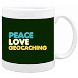" PEACE LOVE Geocaching " Hobbies Tasse (Vert Fonce, Céramique, 325 ml)